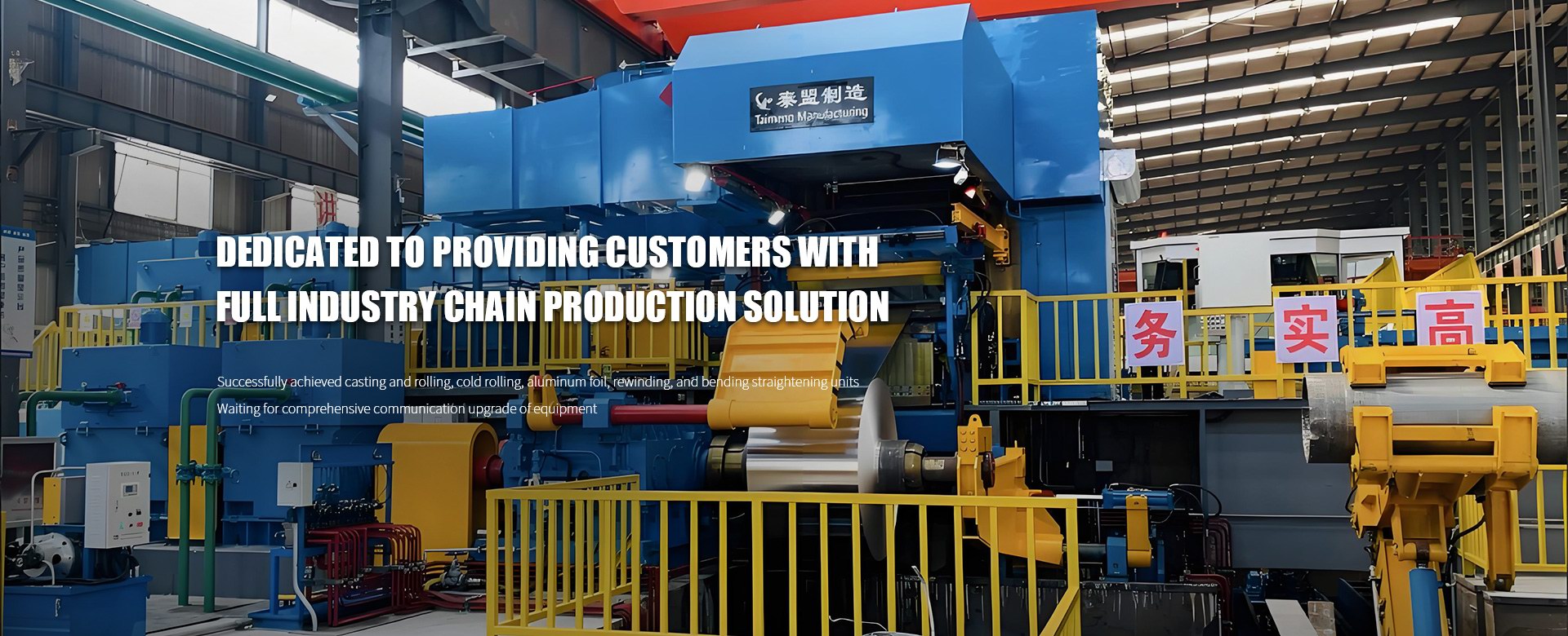 LUOYANG TAIMENG MACHINERY MANUFACTURING CO.,LTD was found in Dec.2008.It is located at No.1,Qingcheng Road,High-tech Development Zone,Luoyang District,China(Henan)Pilot Free Trade Zone.It is close to Luoyang’s High-tech Zone Expressway Station and main street of Heluo Road,which makes convenient transportation.With fixed assets of 50 million CNY,it’s a limited liability company,a private enterprise,and a high-tech enterprise.The ISO9001 quality management system certification is already achieved.We have complete divisions including Sales Department,Design Department,Production Department,Purchasing Department and Finance Department.We work on planning and layout for aluminum processing plant,provide the design,manufacture,installation and commissioning for a complete set of equipment,and undertake turnkey projects for aluminum processing production equipment.We successfully provide the Roll caster,Cold mill,Foil mill,Hot mill and finishing machines such as Tension leveler,Cut-to-length line,Recoiling line,Coating line,Uncoiler,Coiler and Gearbox.,etc for famous aluminum enterprises such as Mingtai Aluminum,DongxingJiayu,Xintai Aluminum,Tongkun Group,Zhongzhou Aluminum,Mingdao Aluminum,Guangdong Sanying,Yunlu Aluminum,Foshan Aluminum,Wanda Aluminum,Jintao Group,Shandong Chuangxin,Longding Aluminum and other domestic aluminum plants.Plant information:-Area:82 acres-Employee:115-Workshop:riveting and welding workshop,assembly workshop with an assembly platform,hydraulic workshop,test-run workshop-Production machine:110 boring machine,130 boring machine,160 ground boring machine,200 ground boring machine,1.6m*6m horizontal lathe,1.3m*5m horizontal lathe,2m gear hobbing machine,4*10m CNC gantry machining center and other auxiliary equipment.Since its establishment,the company has designed and manufactured a 2,450 mm wide continuous casting and rolling unit,as well as the fastest domestic high-speed casting and rolling unit(3.2 meters per minute)with the thinnest rolling capacity(2.8 mm).The green short-process project with 60 continuous casting and rolling units,currently the world's largest single-project setup,along with fully AC cold rolling units,2000/2200 aluminum foil rolling mills,and 2300 six-high cold rolling mills,has gained high recognition from customers.Currently,our company has successfully upgraded all of our casting and rolling,cold rolling,aluminum foil,recoiling line,and tension leveler to AC power.This significant step not only helps customers significantly reduce production costs but also effectively boosts their economic benefits,enabling them to gain a more advantageous position in the competitive market.By transforming our equipment to AC power,we are committed to providing customers with more efficient,energy-saving,and stable solutions for the entire industrial chain,working together towards a more prosperous future.